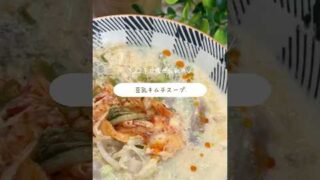 【レンチン5分】豆乳キムチスープ#時短レシピ#簡単レシピ#ヘルシーレシピ#ダイエットレシピ#食生活#レンチンレシピ#痩せレシピ#節約ごはん#ズボラ主婦#キムチ#豆乳#白菜#もやし