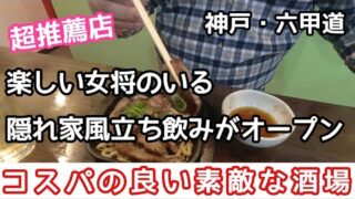 【食べ歩き・飲み歩き】神戸・六甲道 楽しい女将のいる隠れ家風立ち飲みがオープン《神戸グルメ》☆新店舗情報 ☆超推薦店 ☆コスパの良い素敵な酒場