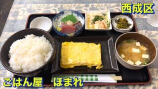 【西成区】あいりん地区 萩之茶屋 ごはん屋ほまれにて 激安で美味しい玉子焼きセット(定食)を頂きました ご飯大盛り・刺身・小鉢・お味噌汁など 大阪グルメ/大阪ランチ/コスパ最強/昭和レトロ/食べ歩き