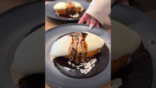 スィーツ 京都にある大人気洋食屋の白いオムライスの作り方🍳半熟とろとろの白いオムレツの中には濃厚な黄身も隠れてる! #京都グルメ