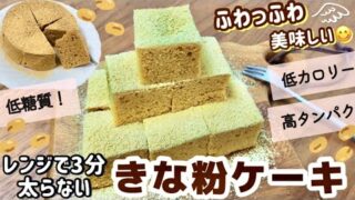 電子レンジレシピ ふわっふわ✨お腹いっぱい「低糖質きなこケーキ」😋小麦粉なし!オーブンなし!レンジで3分💡高タンパク💪🏻【太らないダイエットレシピ】