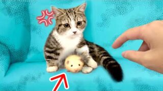 ペット 【ハムスターに触ろうとするとブチギレる凶暴子猫🔥】(#たまご犬猫)柴犬A violent cat that gets angry when it tries to touch a hamster