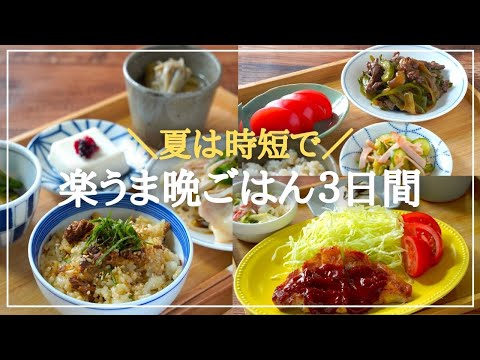 【3日間の夕飯献立】夏は時短で!和食・洋食・中華の簡単スピード晩ごはんレシピ 2023.07.24 ご視聴ありがとうございます。 今回のテーマは暑い日にパパッと作ることができる『時短で楽うまな晩ごはん』 市販品も使ったスピードおかずがメインの献立です。 キッチンに立つ時間が短くなるような献立決めの参考…