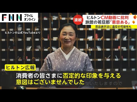 ヒルトンのCM動画に批判 旅館の若旦那「悪意ある」 景品表示法に違反の可能性も 2023.11.18 大手ホテルチェーン「ヒルトン」が、公式YouTubeチャンネルに載せた、あるCMが大きな波紋を呼んでいる。 CMの前半では、旅館を舞台に、おかみらしき人物が登場。 宿泊客に対し、早口で入浴や食事の時間を細かく指…