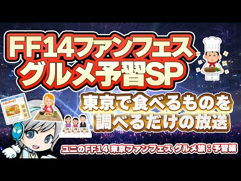 【FF14】日本ファンフェスグルメ旅:予習編 東京のおいしい食べ物屋さんを調べるだけの放送です!【ユニ】 2023.12.28 2024年のFF14日本ファンフェスで東京に遠征の冒険に行くので期間中に食べる美味しい食べ物を調べるだけの放送です! 開催期間中の東京ドーム近辺の美味しい食べ物情報、ドーム内のお店の情報などもお待ちしておりま…