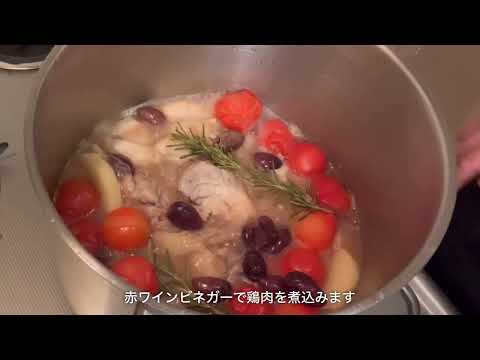 赤ワインビネガーで鶏肉を煮込みました。
