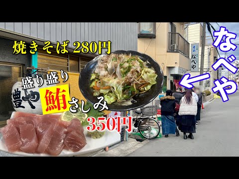 西成なべやの横に、令和の今、焼そば280円で出したり大盛り鮪刺身350円出したり時代に逆らってる店あったから呑んでくる 2024.02.23 大阪 西成のなべやさんの隣にコスパ良すぎる立ち飲み屋さんがあるということで「筑豊や」さんでひとり呑みしてきました😄🍻 盛り盛りのまぐろの刺身 350円凄すぎ‼️ 他のあてもリーズナブルでボリューム満点💯 料理の腕…