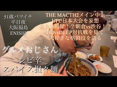【51歳バツイチグルメおじさん】大阪福島THE MATCH2 メイン中止でUFC日本大会立案!?大好きな朝倉兄弟への想いをビブグルマン選出店の担々麺を食べながら語る 美女店主を紹介され妹を狙う! 2025.03.11 岩屋にあるENISHI総本店さんはオープン時から何度か通っていたお店。担々麺でミシュランビブグルマンに選出され、今では5年連続百名店に入る人気店のこちらを今回は紹介致します😍 ボリュームNo.1の『担担麺からあ…