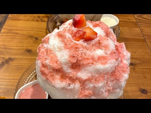 神戸元町商店街の人気のかき氷店 ふわりひめに行ってみました Big delicious shaved ice.Strawberries and milk tea 南アルプス天然氷 ふわりひめ スィーツ 2025.06.07 #冷たいスイーツ