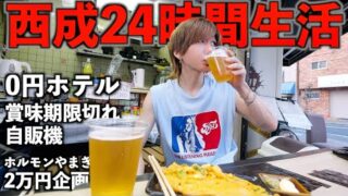 【日本のスラム街】西成あいりん地区で24時間生活!(0円ホテル、賞味期限切れ自販機、ホルモンやまき)